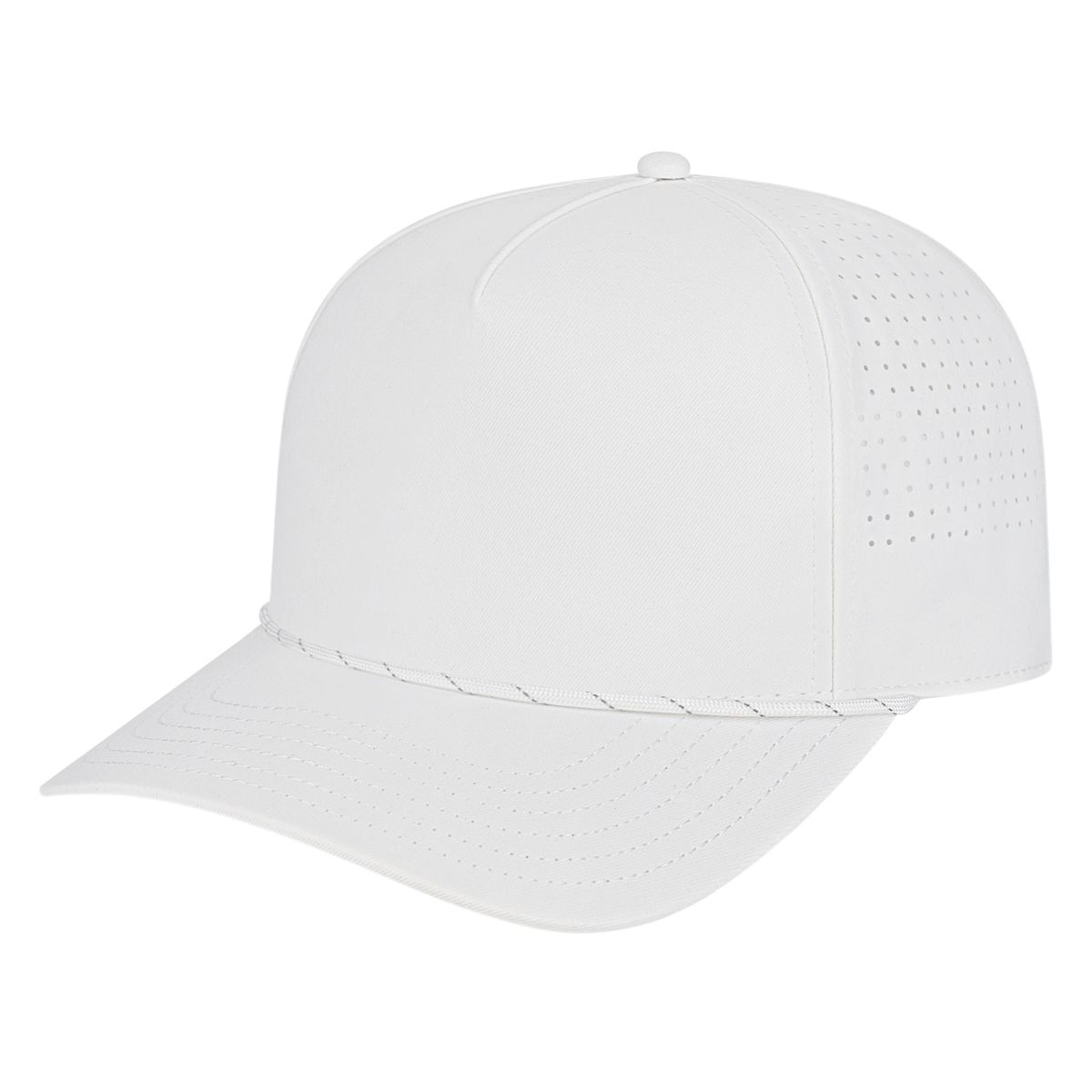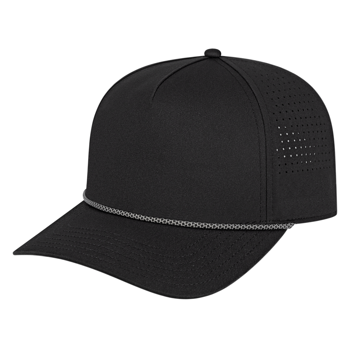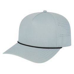 Our i3056 combines elevated style and performance with laser-cut perforations, a quick-dry sweatband, and bold rope accent. A polished look that moves easily from tee box to mountain trail, and everywhere in between. The mid profile five panel structured cap with a standard modified flat visor, polyester fabric with perforated sides & back, rope accent, and a quick-dry sweatband with adjustable snapback closure.